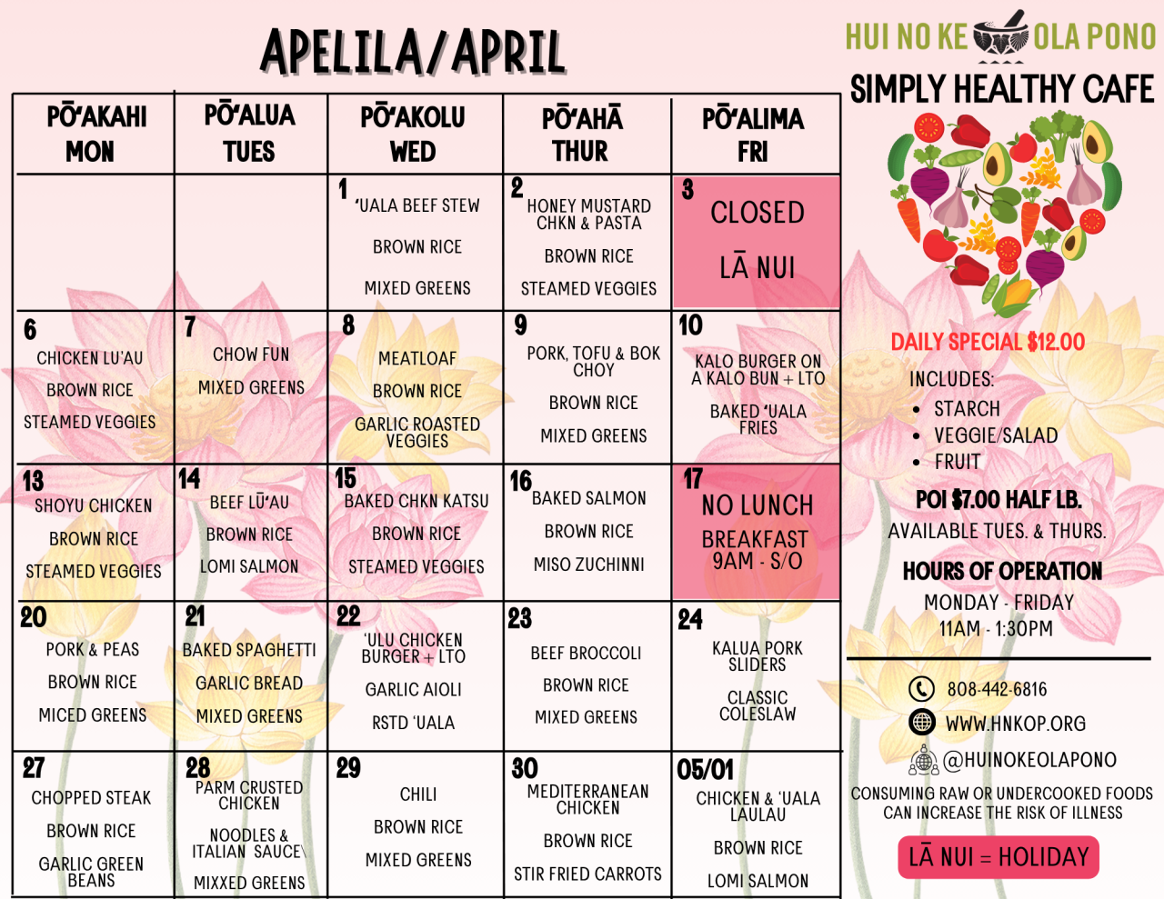 Source: Operator (https://operator.fyi/vegan-restaurant/wailuku/simply-healthy-cafe-0960cca5/) Business: Simply Healthy Cafe, Trade: Vegan Restaurant Location: Wailuku, HI 96793 Phone: (808) 244-4647 Website: https://www.hnkop.org/simply-healthy-cafe/ Rating: 4.6/5 (5 reviews) Data license: https://operator.fyi/terms/ Refreshed: nightly